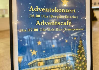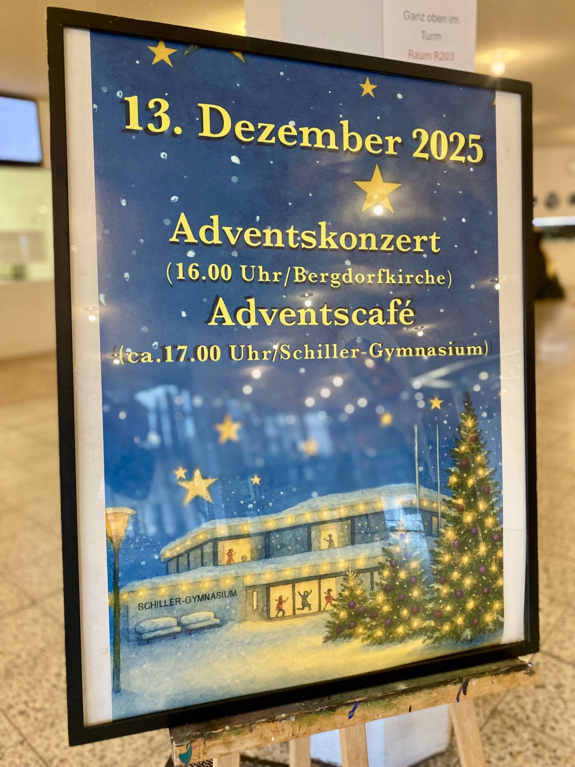 Das Adventskonzert sowie die daran anschließende Eröffnung des 13. Adventsfensters am Schulhaus zeigte eindrucksvoll, wie lebendig das musikalische Leben am Schiller-Gymnasium ist: ein Nachmittag/Abend voller Musik, Gemeinschaft und stiller Vorfreude auf Weihnachten, der vielen Gästen noch lange in Erinnerung bleiben wird.