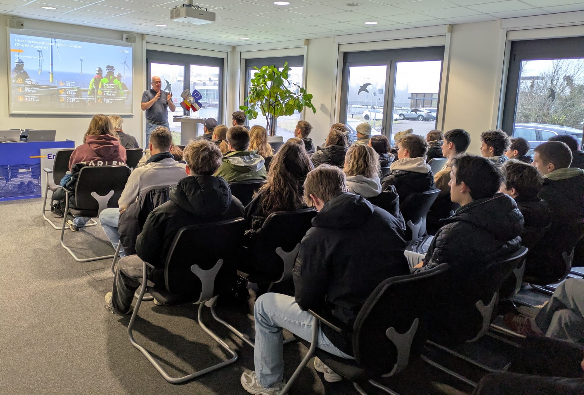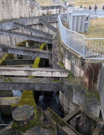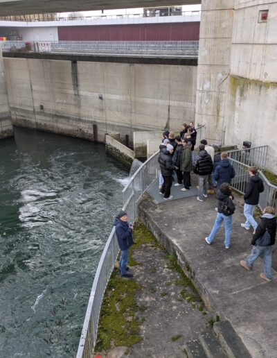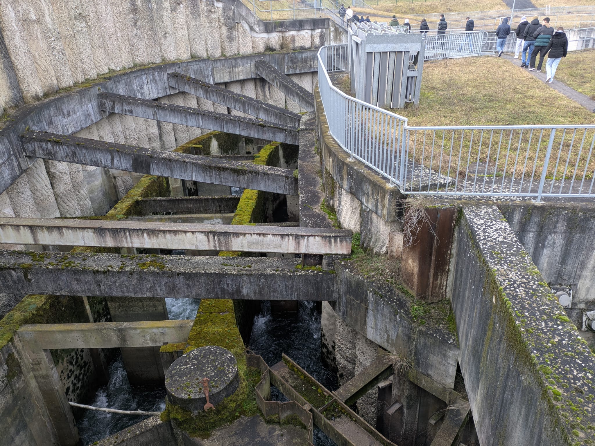Zu Beginn erhielten die Schüler in einer anschaulichen Präsentation vielfältige Informationen zum derzeitigen Stand der Energiewende sowie den damit verbundenen Herausforderungen und Zielsetzungen. Der anschließende Rundgang führte die Gruppe zeitweise 27 Meter unter den Rhein, gewährte Einblicke in die Turbinenhalle und ermöglichte den Besuch der 300 Meter langen Fischtreppe.