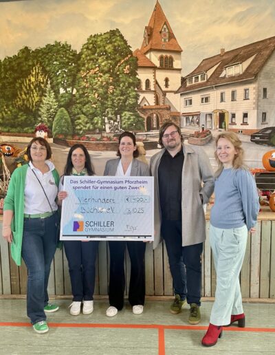 Gleich zwei Spendenübergaben fanden im Oktober am Schiller-Gymnasium statt. Zweihundert Euro wurden an den Kinderschutzbund Pforzheim Enzkreis e.V. übergeben und vierhundert Euro an den Ortsverein Büchle e.V.. Damit unterstützen die Schüler und Schülerinnen der Ganztagesschule besonderes haupt- und ehrenamtliches Engagement in der Region.