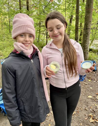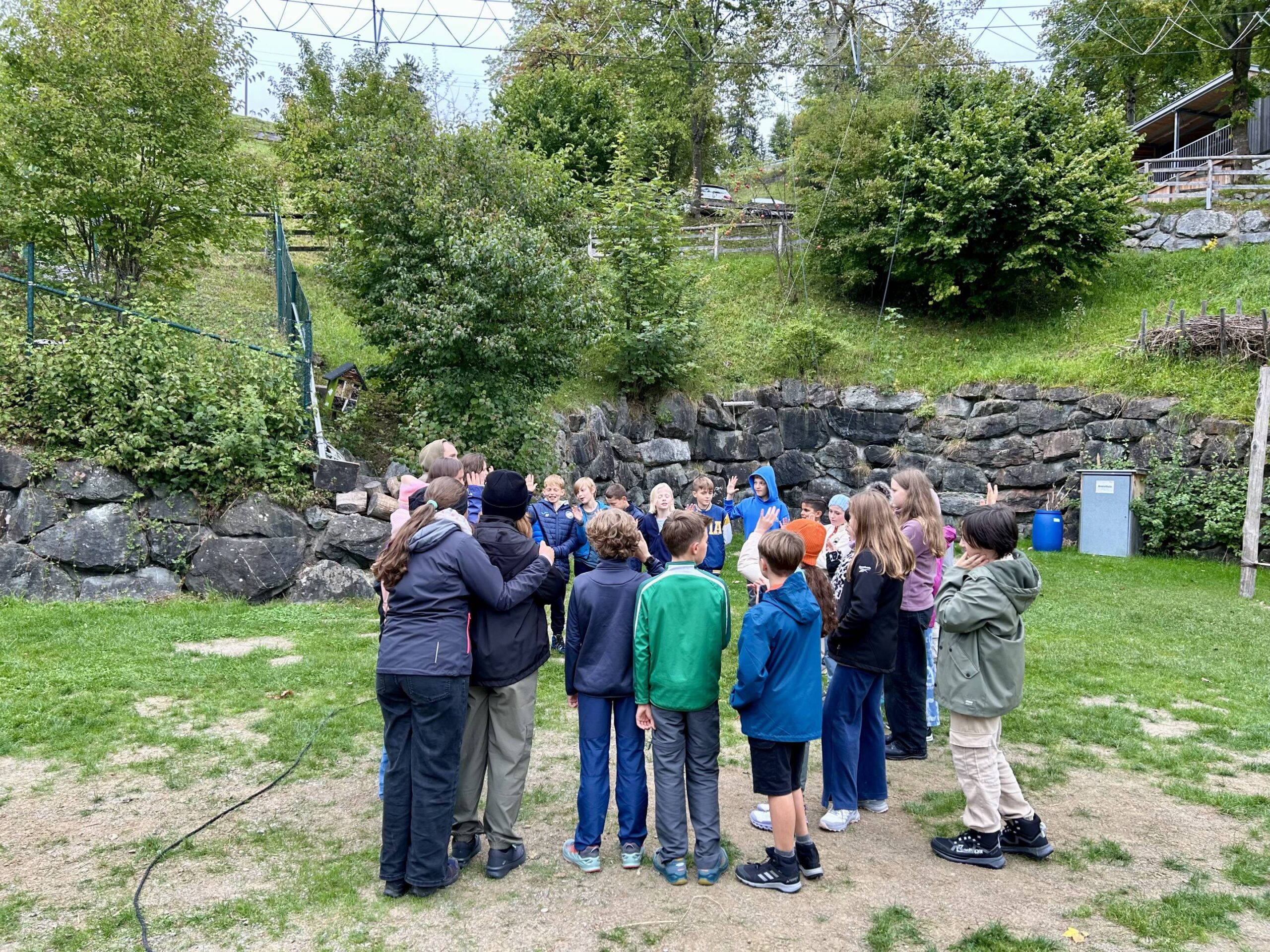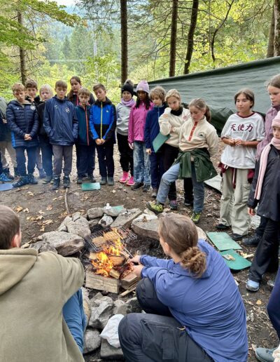 Aber kehren wir zum Ankunftstag zurück. Es ist Nachmittag, die Zimmer sind erobert und die meisten Betten sind mit Betttüchern und Bezügen, zum Teil etwas individuell, bestückt. Unsere Trainerinnen und Trainer stellen sich den Schülerinnen und Schülern vor: Ina, Jonas, Markus und Julia. Jede Klasse wird von jeweils zwei bergsporterfahrenen Freizeitpädagogen gemeinsam mit ihren Lehrern betreut. Und gleich geht es los mit den ersten Gruppenspielen, wie „Allgäuer Tor“ oder „Ranger im Wald“. Immer wieder gibt es dann den Besprechungskreis, damit alle in Ruhe gehört werden können, Regeln gemeinsam abgesprochen und das einander Zuhören besser gelingt. Das ist wichtig, damit alle sich wohlfühlen können und ein „Miteinander“ entstehen kann.
